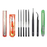 ● FULL RANGE AND COST EFFICIENT—Package include : 1 X Cutting pad;1 X Pen knife and 1 X blade;1 X Steel rule;2 X Tweezers;1 X Scissor;2 X Polishing block;1 X Knife;5 X Files;1 X Hand drill;1 X 10pcs Drills;4 X Knife stones:4 X Sandpaper.