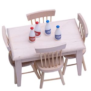 Taponukea Miniature Dollhouse Furniture and Accessories 1 12 Scale Dollhouse Miniature Furniture Wooden Dining Table Chair Bottles Model Set (Table Chair Set+Milk Bottle)