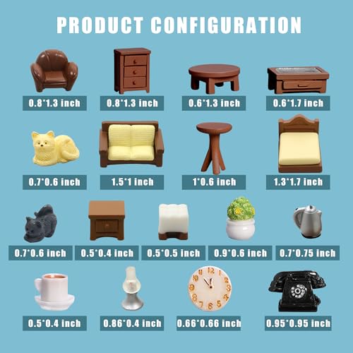 Premium Materials: Dollhouse furniture are fabricated from non-toxic and Environmentally Resin in bright colors.