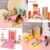 Natural protector: the colorful wooden dollhouse furniture is polished and coated with edible linseed oil and natural wax to protect wood from water and dust; As you know, a wax is a safe product for teens, so they won’t be affected