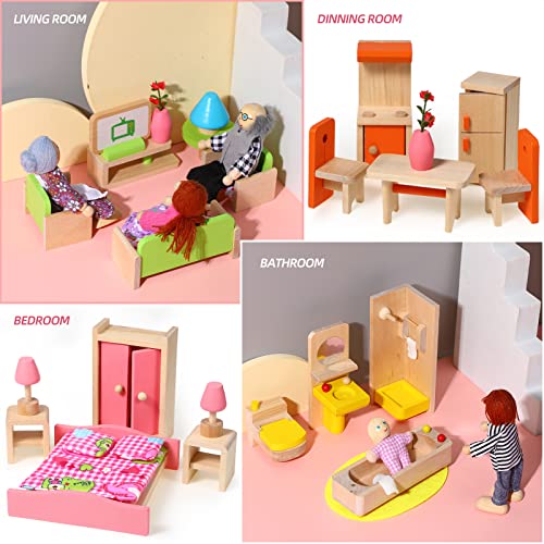 1:12 Scale: each miniature doll house furniture size is approx 3-12 cm/ 2-4.8 inches; Suitable for many types of toys; Lovely happy family dolls are added in our set for you except bathroom, living room, dining room, bedroom, kitchen