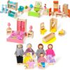 What you get: this is a charming set of colorful and cream dollhouse furniture set; The set includes 52 pieces: living room, dining room, bathroom, nursery room and family dolls; This doll house furniture are suitable for teens playing, at home shows, collect, wedding or party decoration