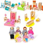 Features: That wood is a natural material and that’s a reason why each wood has an elegant look. So we want you to be aware that wood pattern applied in our product might vary. Wooden toys are nice alternatives to plastic ones. Handmade wooden toys are suitable for encouraging your little one to explore and learn through imaginative play. A set of 6 wooden dollhouse furniture made from wood with sturdy construction. Includes living room, dining room, bathroom, nursery room and family dolls. Specifications: Color: as shown in the picture Material: wood Each room’s size: 19 x 16 x 5.5 cm/ 7.4 x 6.3 x 2.2 inches Package size: 30.5 x 23.5 x 16.5 cm/12 x 9.3 x 6.5 inches Package includes: 6 Set of dollhouse furniture Notes: Manual measurement, please allow slight errors on size. The colors may exist a slight difference due to different screens. Toys are suitable for children above 12 years old.