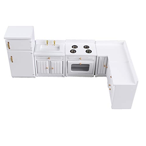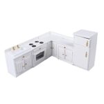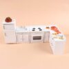 Package Content: 1 x Miniature Cooking cabinet, 1 x mini Corner cabinet, 1 x mini Sink, 1 x mini Cooking hob and 1 x mini Fridge.