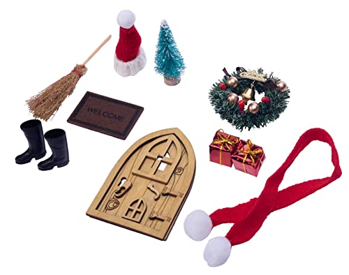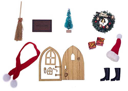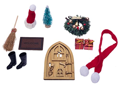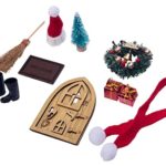 Package contains: 1 x Wreath, 1 x Tree, 1 x Broom, 1 x Carpet, 1 Pair of Boots, 1 x door, 1 x Christmas hat,1 x scarf and 2 mini gift boxes.