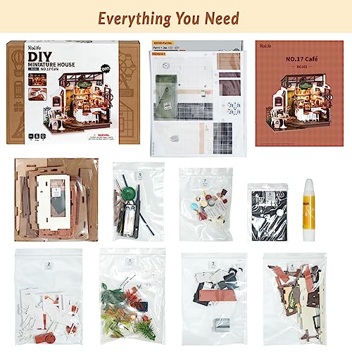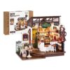 [Rolife NO.17 Café] This miniature dollhouse kit is in keeping with real coffee shops, with a scale of 1:20. Compared with the previous mini houses,we now have added more plastic and wooden parts to reduce the assembly time.