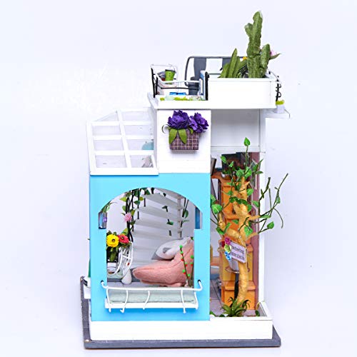 【Exquisite Dollhouse Kit】1:24 Scale Miniature Dollhouse DIY Mini House Kit with Led Lights and Furniture;Assembled Size:9.8*6.3*7.8 inches