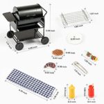 INCLUDES 7 ACCESSORIES: 1 metal grill, 2 skewers, 1 steak, 2 pork chop, 1 metal cooking tong, 1 tomato sauce, 1 salad dressing and 1 plate.