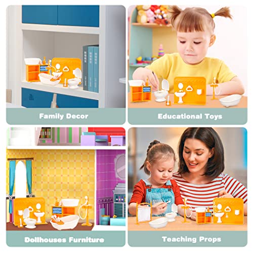 Fun Educational Toys:Dollhouse furniture toys can develop kid’s hands-on ability, creativity, social skills while playing.Children can pretend bathing, washing face or brushing teeth for their dolls, help them to form good hygiene habits from an early age.