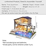 UniHobby DIY Miniature Dollhouse Kit Time Apartment DIY Dollhouse Kit with Wooden Furniture Light Gift House Toy
