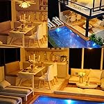 DIY miniature dollhouse kit package includes: all furniture & materials showed,the LED light,plants,ornament,furniture are quite realistic and cleverly designed. All the materials are almost the same as real house so cute and beautiful.
