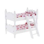 Dollhouse Furnishings come with 2-level baby bunk bed with ladder, fitting mattress and matching floral comforter and pillow for dollhouse role play.
